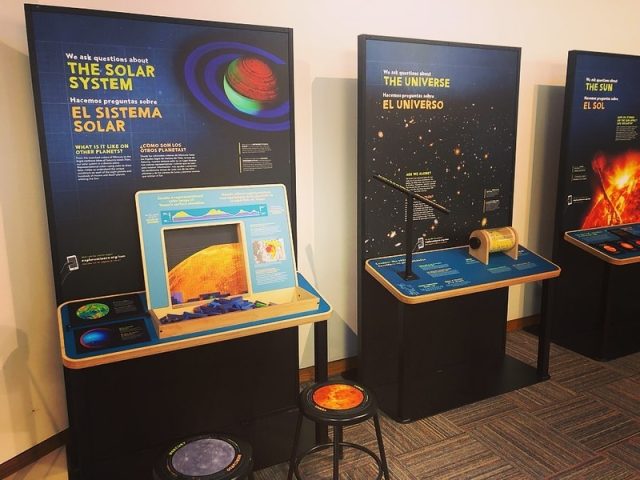 Check out AMOS’s newest temporary exhibit – Sun, Earth Universe. In this hands-on exhibition, you learn about how scientists study the Earth, Sun, solar system and universe; design, build and test your own model spacecraft; use tools to see the invisible; and see how scientists use color to help us understand data.